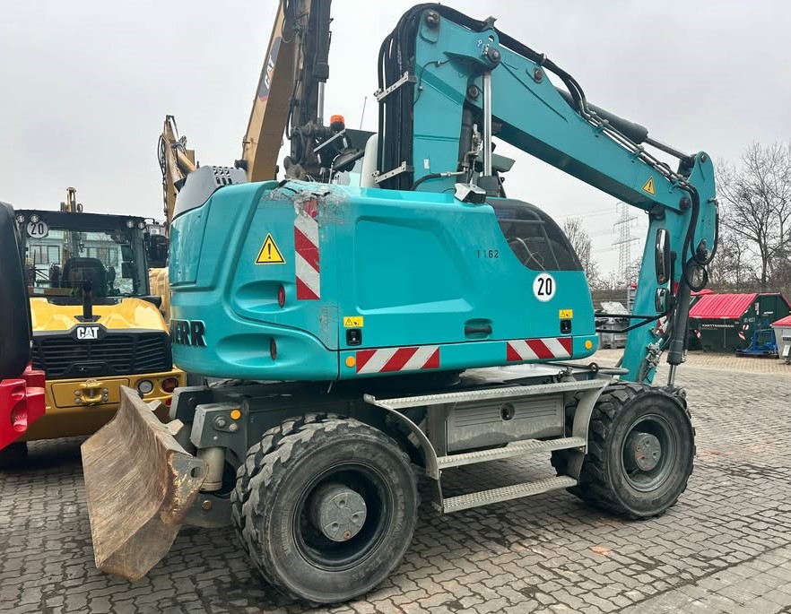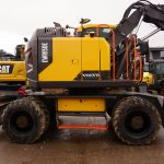 Koparka kołowa Volvo EW 160D, 2014 rok. Waga 20 500 kg, moc 115 kW, przebieg 9 000 mth. W zestawie rotator i 1 łyżka. Maszyna sprowadzona z Niemiec, stan bardzo dobry, gotowa do pracy. Cena netto 270 000.