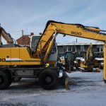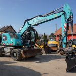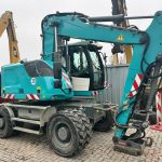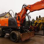 Koparka kołowa Hyundai Robex 140W, 2015 rok. Waga 15 180 kg, moc 99kW, przebieg 10 000mth. Maszyna sprowadzona z Niemiec, stan bardzo dobry, gotowa do pracy. Cena netto 165 000.