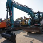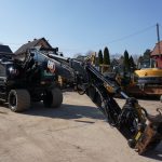 Koparka kołowa Mecalac 12 MTX, 2012 rok. Waga 10 000 kg, moc 74 kW. W zestawie łyżka skarpowa, łyżka czołowa oraz 3 łyżki do kopania: 40 cm, 60 cm i 80 cm. Maszyna sprowadzona z Niemiec, stan bardzo dobry, gotowa do pracy. Cena netto 110 000.