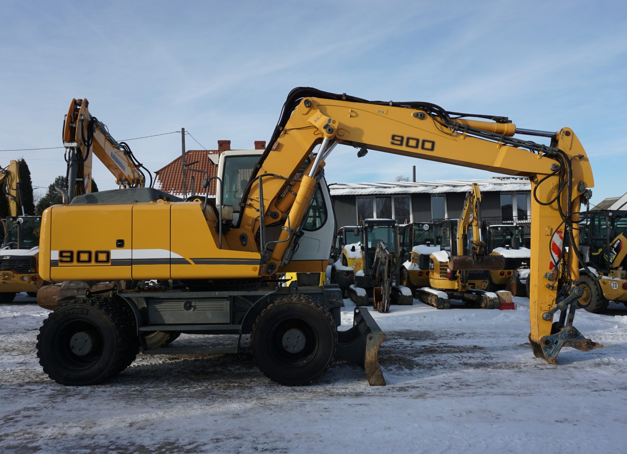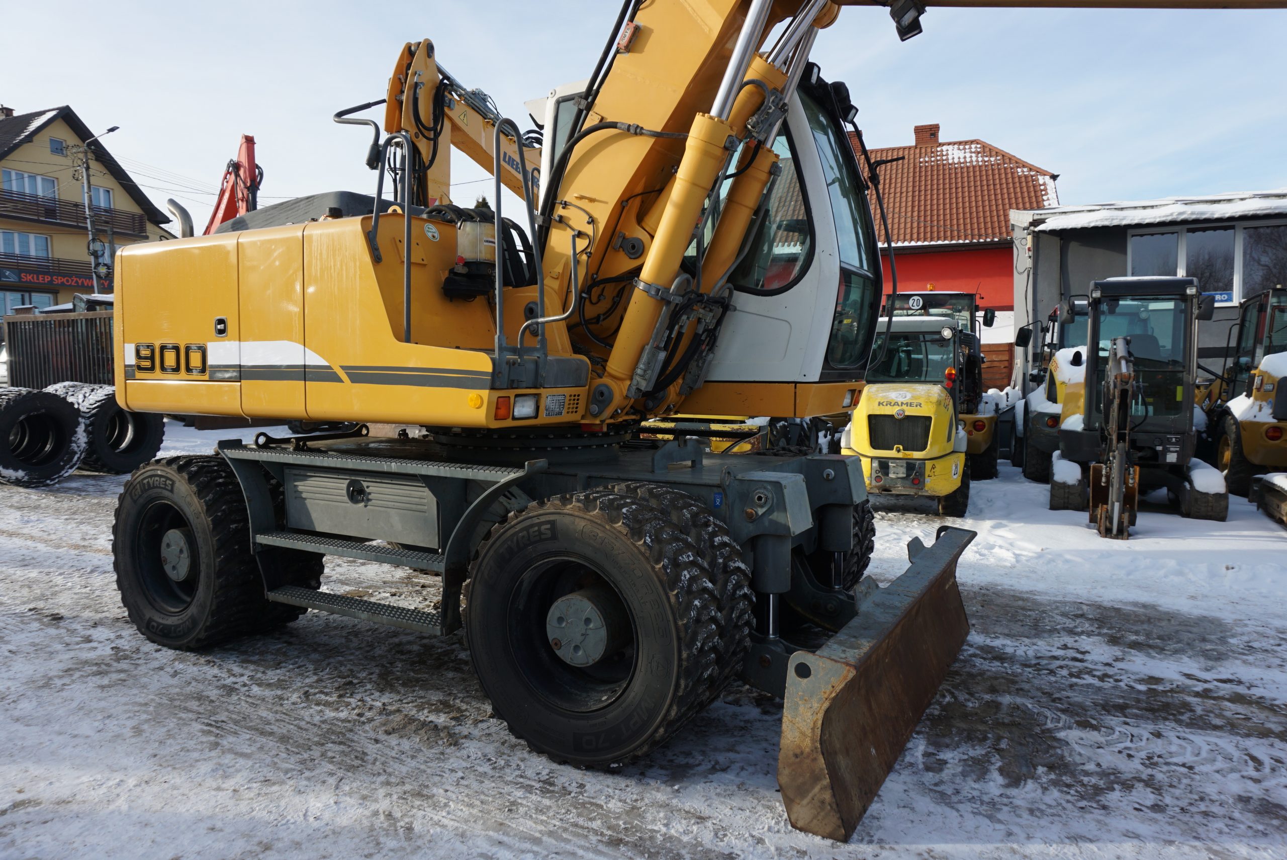 Koparka kołowa Liebherr A 900 C, 2012 rok. Waga 18 000kg, moc 95 kW, przebieg 12 000 mth. Maszyna sprowadzona z Niemiec, stan bardzo dobry. Cena netto 160 000.