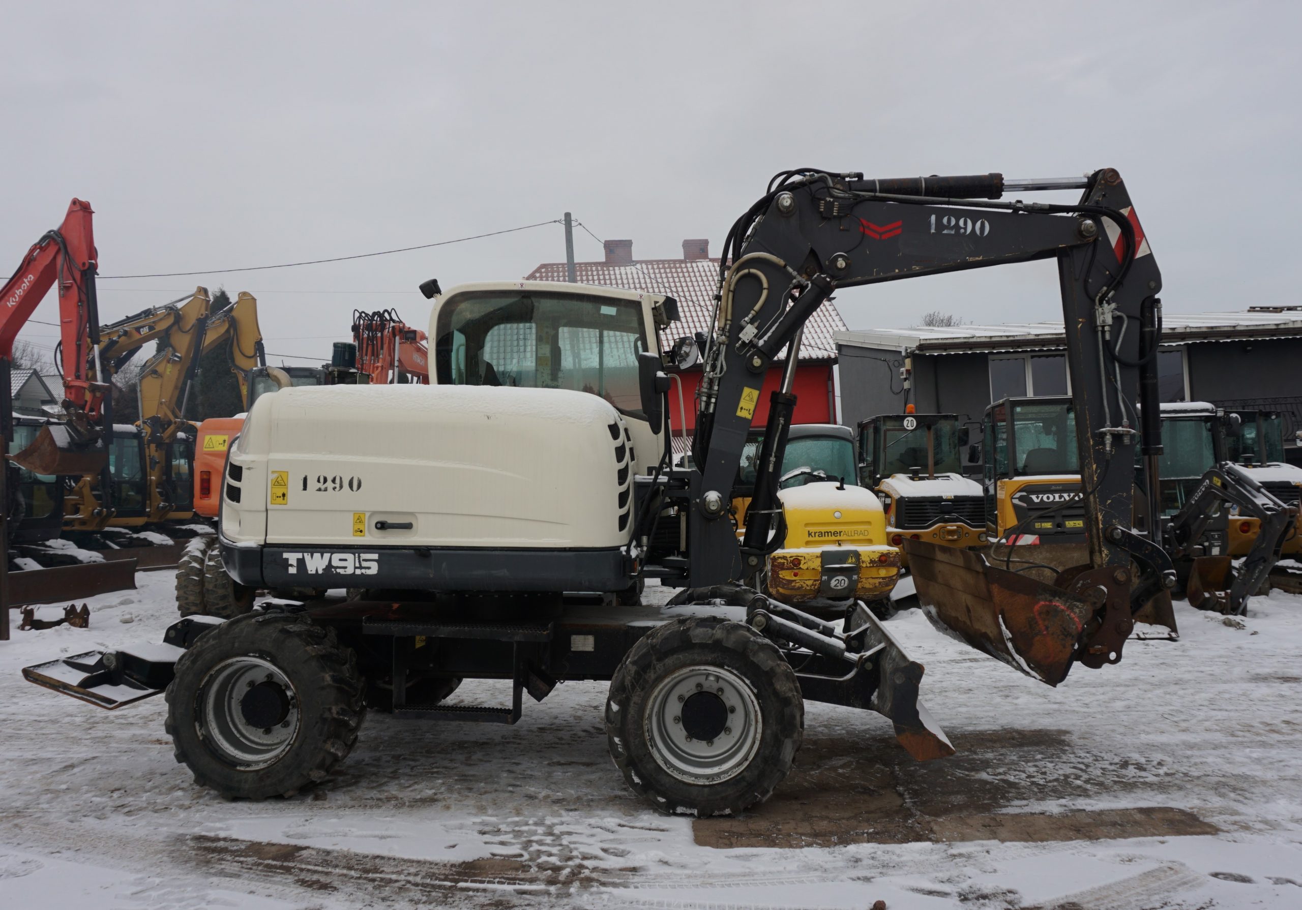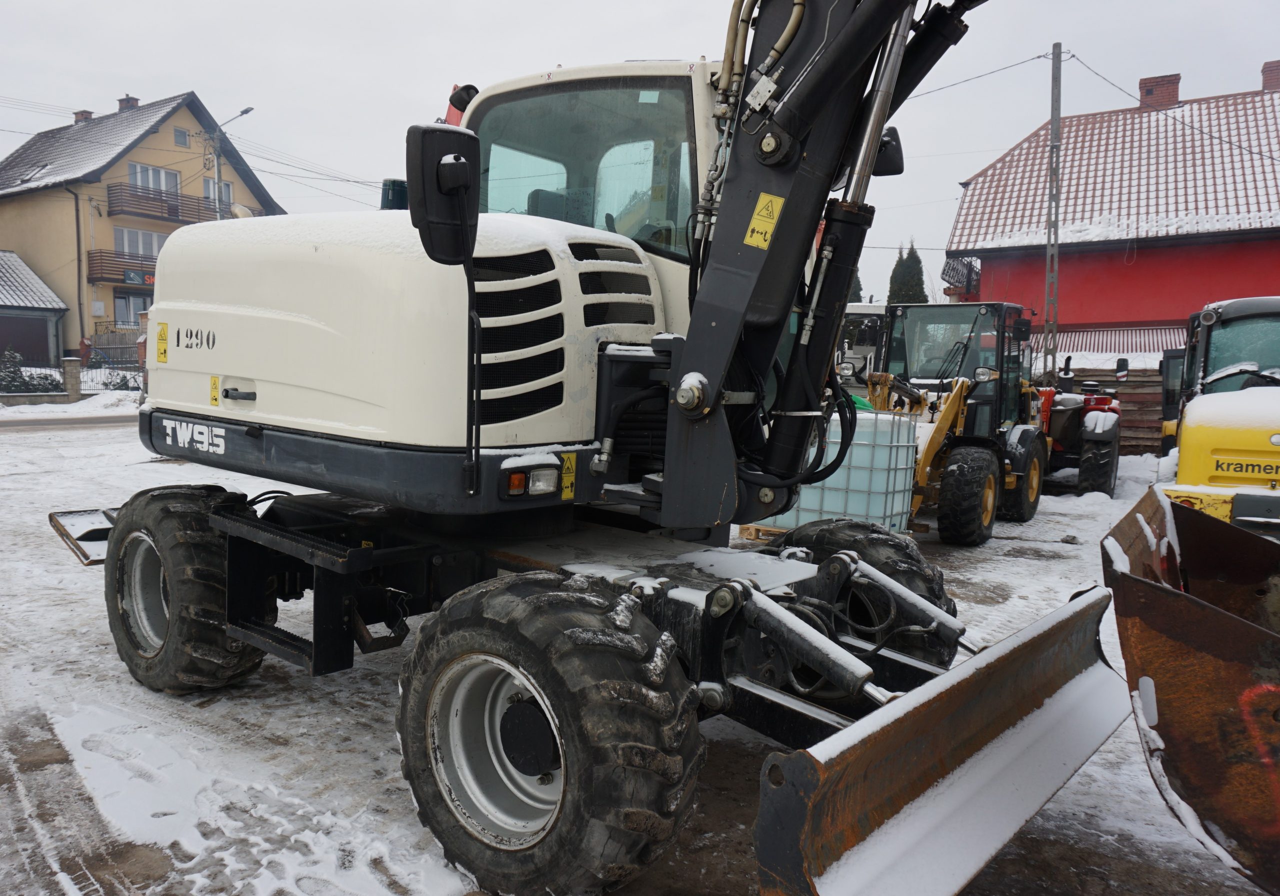 Koparka kołowa Terex TW 95, 2018 rok. Waga 11 000 kg, moc 74,4 kW, przebieg 5 000 mth. W zestawie 3 łyżki i widły. Możliwość wymiany kół na bliźniacze. Maszyna sprowadzona z Niemiec, stan bardzo dobry, gotowa do pracy. Cena netto 180 000.